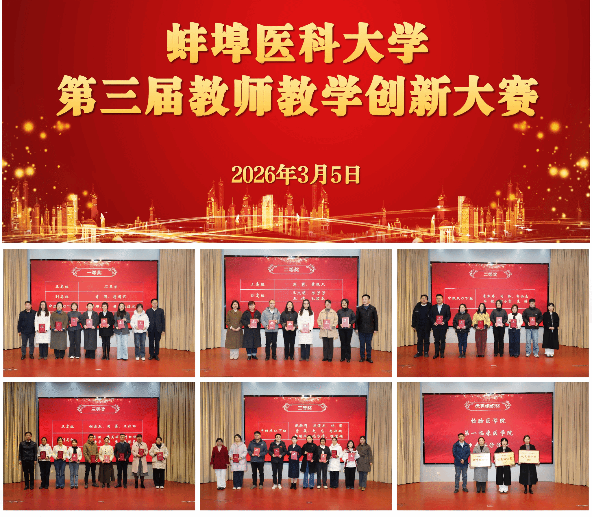 此次大赛为全校教师搭建了教学创新交流互鉴的平台,有力推动了教育教学理念更新、教学模式改革与教学能力提升,为学校教育教学高质量发展注入了强劲动力。校赛后,人事处、教师发展中心将协助获奖团队全力备战省赛,以赛促建、以赛促创,持续深入推进学校教学创新改革工作,为培育适应新时代需求的高素质医学人才注入源源不断的动力。